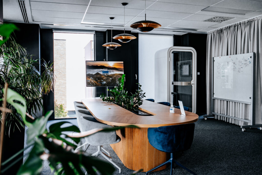 - Kompleksowym podejściem – realizujemy pełny fit-out biura, od pierwszego szkicu po ostatni detal.